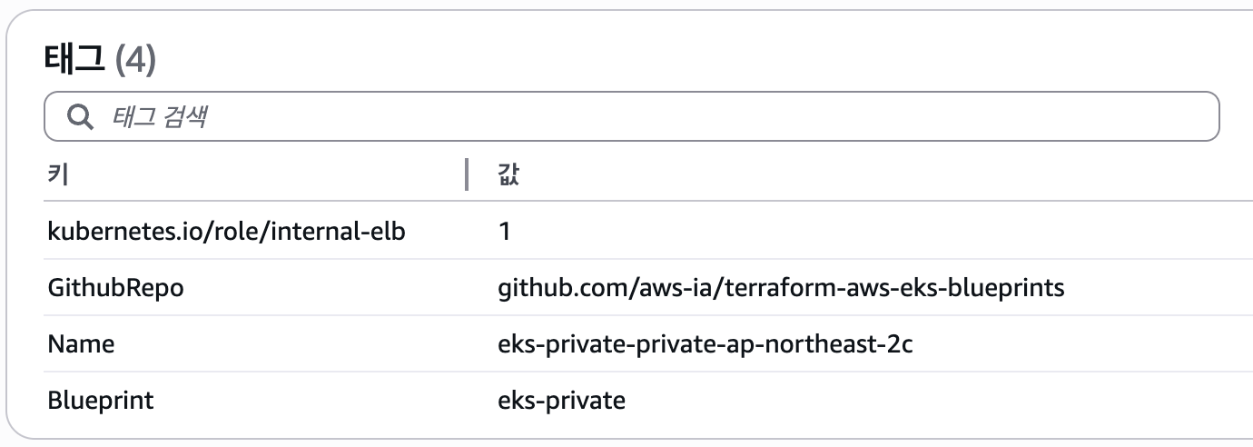추가적으로 Internal LB를 사용해야 하는 경우가 있다면 아래처럼 private 서브넷에도 태그를 관리해줘야한다.
