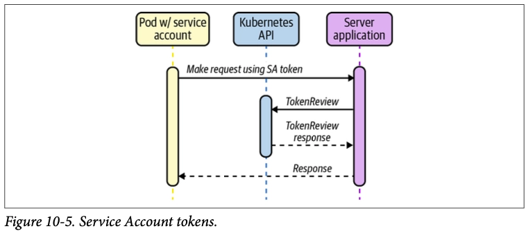 아래 그림은 Pod가 Service Account를 통해 API Server에 인증하는 전체 흐름을 보여준다. 즉, Pod라는 리소스가 SA를 통해 인증을 하고 Role과 연결된 RoleBinnding을 통해서 인가까지도 관계를 맺고 있는 리소스라고 이해할 수 있다.