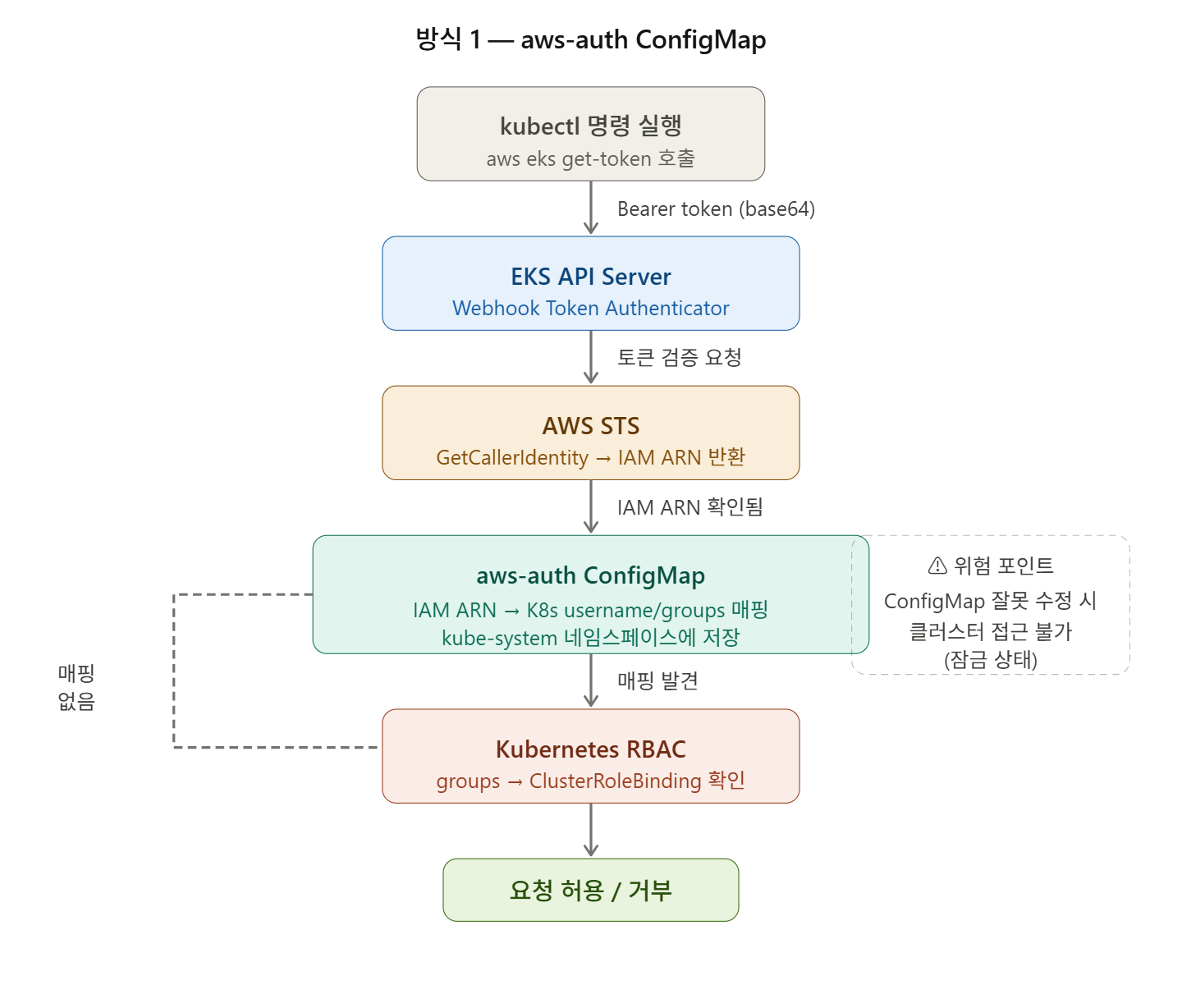 STS는 수신한 JWT 토큰과 IAM Role ARN을 기반으로 IAM에 검증을 요청한다. IAM은 다음 항목들을 확인한다:
