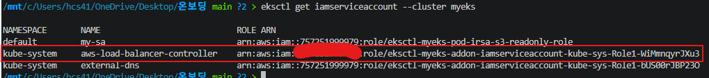 value: arn:aws:iam::911283464785:role/eksctl-myeks-addon-...