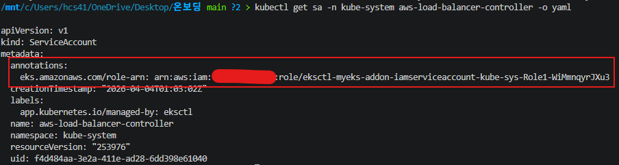 subclaim(예:system:serviceaccount:kube-system:aws-load-balancer-controller)이 토큰과 일치하는지 - Trust Policy의 Condition에 명시된