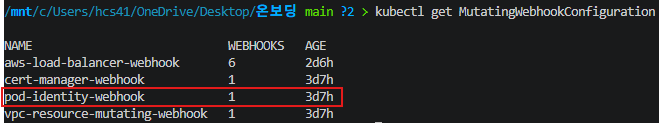 # Pod Identity Webhook은 mutating webhook을 통해 아래 Env 내용과 1개의 볼륨을 추가함