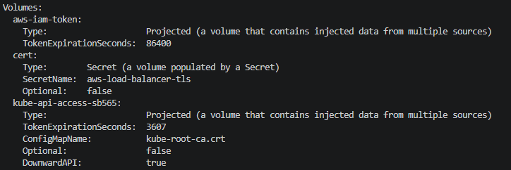 실제 LBC Pod에는 3개의 Volume이 마운트되어 있다. 각각의 역할이 다르므로 정확히 구분해야 한다.