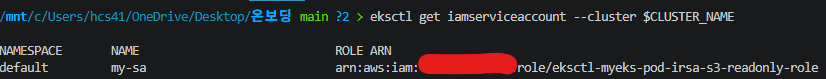 --role-name eksctl-myeks-pod-irsa-s3-readonly-role \