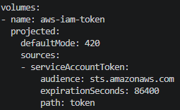 aws-iam-token | Pod Identity Webhook | sts.amazonaws.com | AWS STS에 제출하여 IAM 임시 자격 증명 획득 |