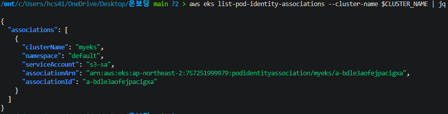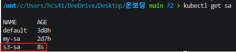 다음으로 파드 내에서 해당 Role이 잘 사용되어 s3 리소스에 접근되는지 보자.