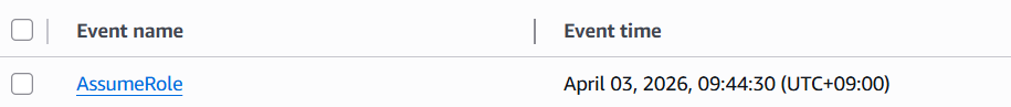 --iam-instance-profile Name=MyProfile위와 같은 과정을 거쳐 해당 노드가 특정한 Role을 사용하도록 설정을 해주면 그 뒤에 EC2에서는 STS에 assumeRole 요청을 보내 실제 해당 역할을 수행할 수 있는 임시자격을 부여받는다. 실제로 콘솔에서 특정 IAM Role을 연결하고 나서 CloudTrail 이벤트를 살펴보면 아래와 같은 assumeRole 이벤트가 발생한것을 확인할 수 있다.