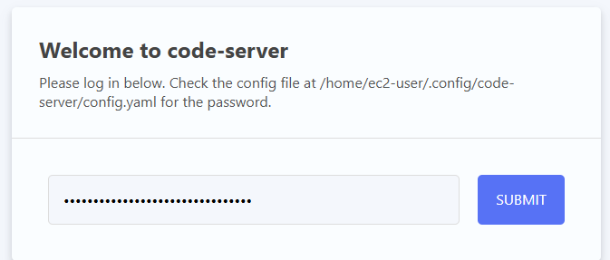 IdePasswordSecretURL로 이동하여 Retrieve 버튼 클릭 → 비밀번호 복사IdeUrl로 접속하여 비밀번호 입력 → IDE 진입